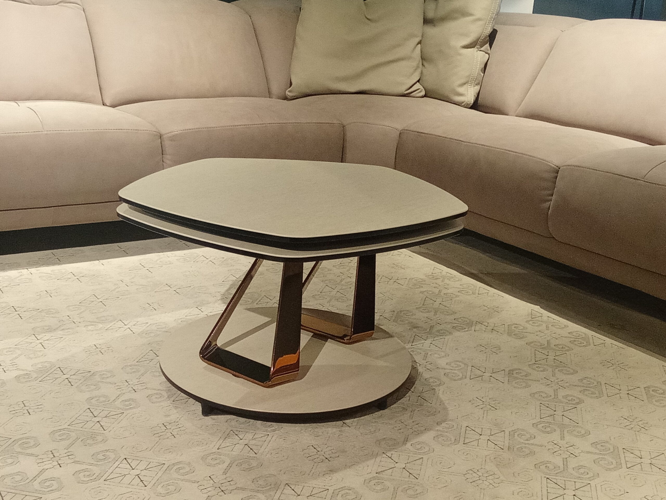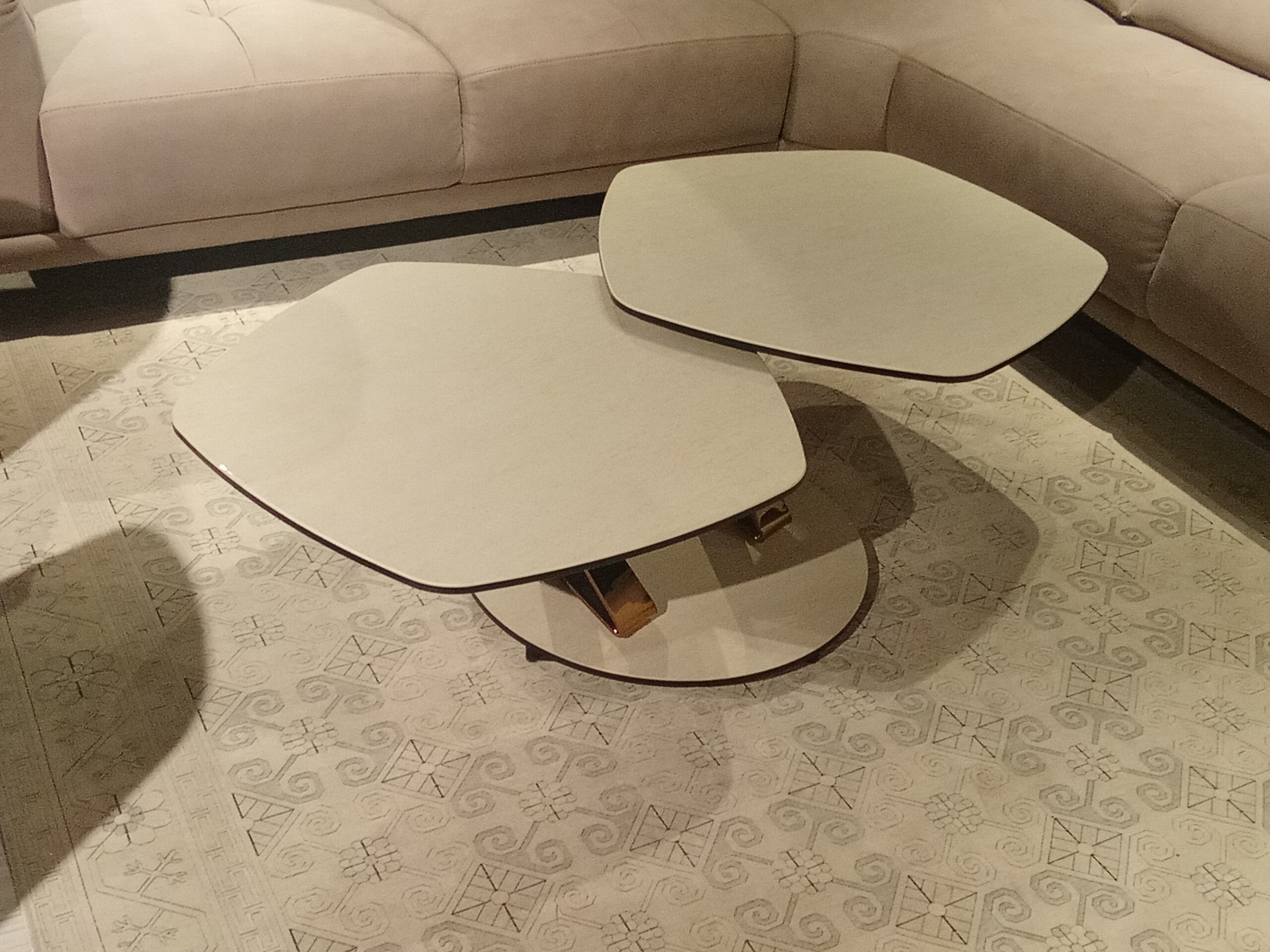 Rozkladací konferenčný stolík so synchronihovanými otočnými doskami.